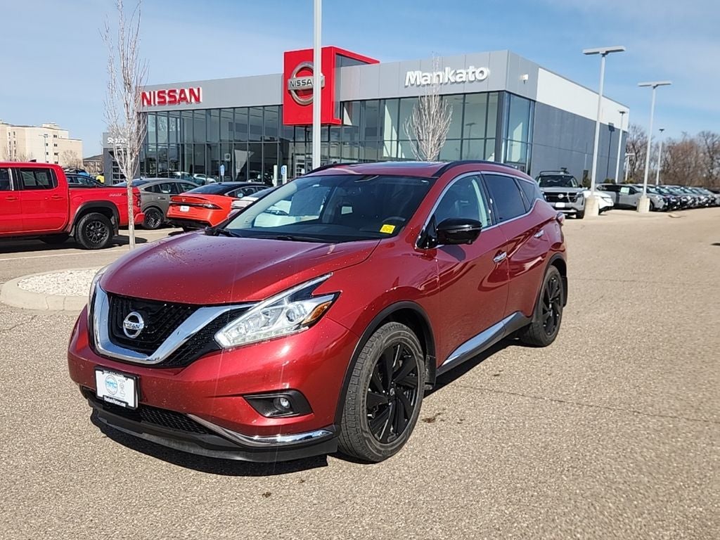 Cayenne Red Metallic 2017 Nissan Murano Platinum AWD CVT with Xtronic 3.5L V6 Murano Platinum, 3.5L V6, CVT with Xtronic, AWD, Cayenne Red Metallic, Graphite w/Leather Appointed Seat Trim, Black Mirror Caps, Black Roof Rails, Black Splash Guards, Blind Spot Warning, Front dual zone A/C, Heated front seats, Heated rear seats, Intelligent Cruise Control, Memory seat, Midnight Edition, Navigation System, NissanConnect Services Powered By SiriusXM, Platinum Technology Package, Power driver seat, Power Liftgate, Power Panoramic Moonroof, Power passenger seat, Predictive Forward Collision Warning (PFCW), Radio: AM/FM/CD Audio System w/Navigation, Ventilated front seats, Wheels: 20 Midnight Black Aluminum-Alloy.
