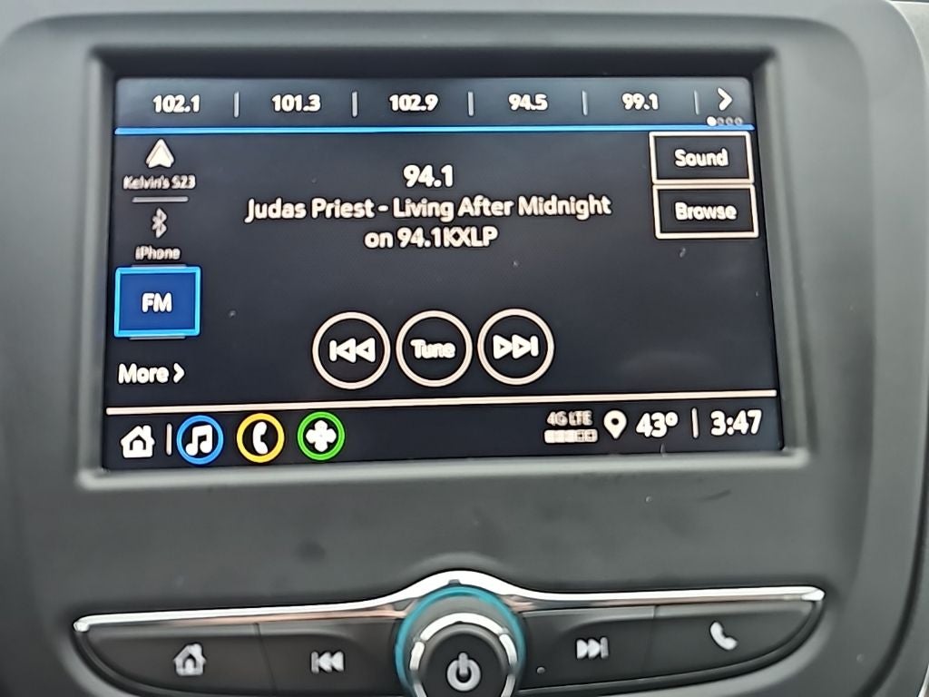 - Audio system, Chevrolet Infotainment 3 system, 7" diagonal color touchscreen, AM/FM stereo. Additional features for compatible phones include: Bluetooth® audio streaming for 2 active devices, voice command pass-through to phone, Apple CarPlay and Android Auto capable.